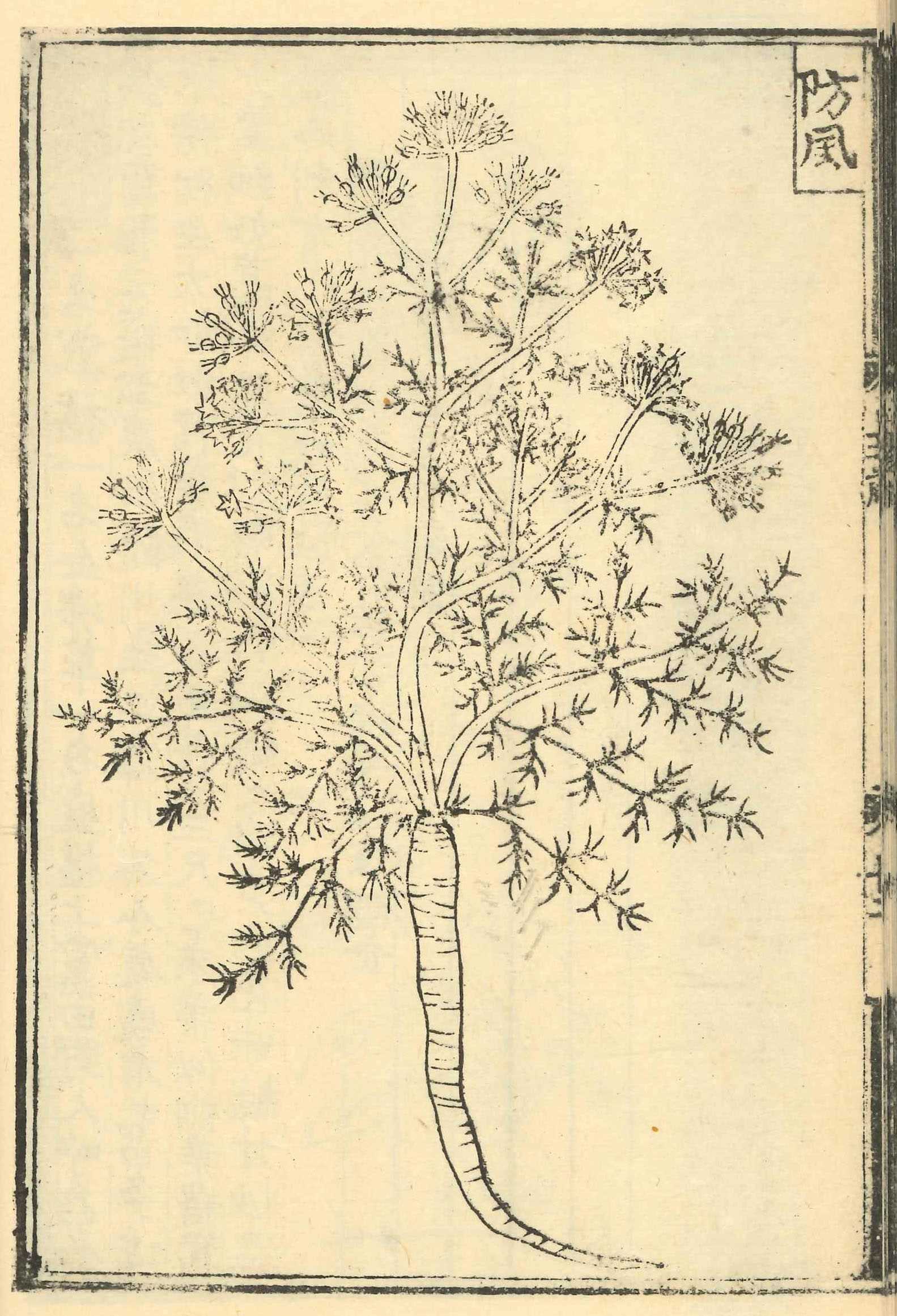 防風 一名銅芸 ,一名茴草 ,一名百枝 ,一名屏風 ,一名蕳根 ,一名百蜚 。生同州