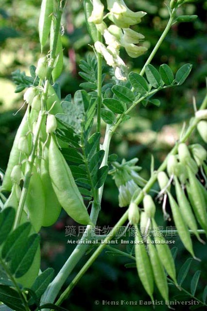 山谷 及白水 、漢中 、河東 、陝西 。出綿上 呼為綿黄耆 。今處處有之 。根長二三尺,獨莖叢生枝𦼮,其葉扶踈作羊齒狀,似槐 葉微尖小,又似蒺䔧 葉闊大而青白色,開黄紫花如槐 花大,結小尖角,長寸許。味甘 性微温